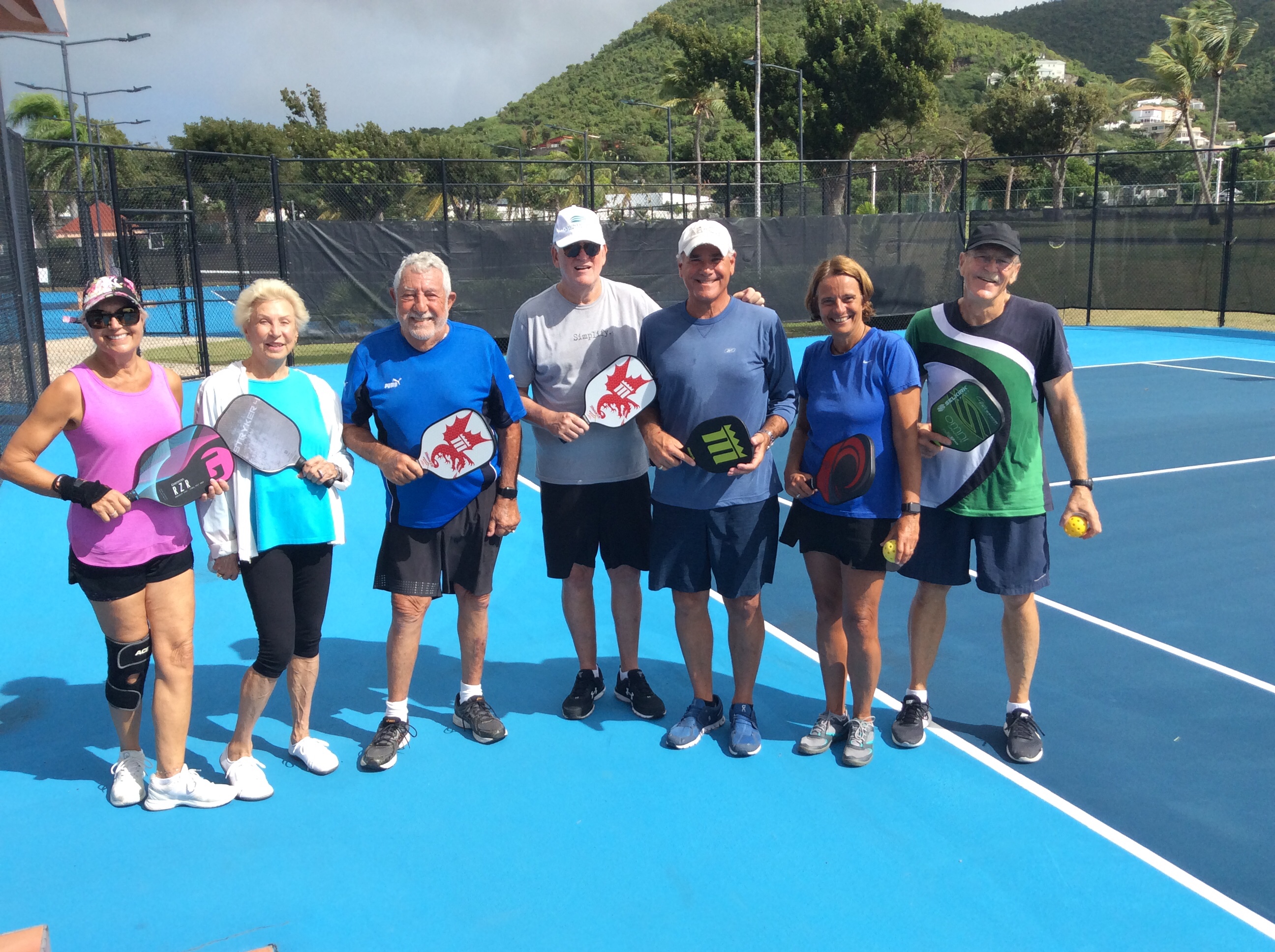 Après une douche matinale, il s’est avéré être une très belle matinée pour jouer au pickleball. Il y avait encore huit joueurs, remplissant deux courts.